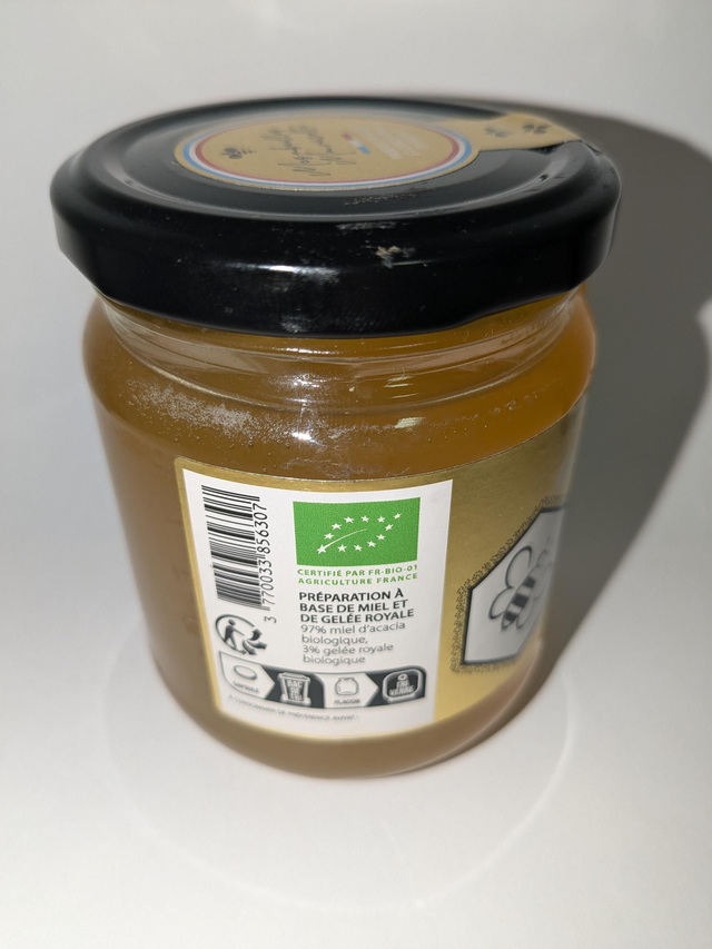 Miel à la gelée royale: une source d'énergie et de bienfaits, 100 % naturelle et gourmande.
